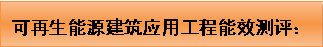 可再生能源建筑應(yīng)用工程能效測評是指對地源熱泵系統(tǒng)、太陽能熱利用系統(tǒng)、太陽能光伏系統(tǒng)進行指標評價、性能合格判定和性能分級評價,以及節(jié)能效益、環(huán)境效益、經(jīng)濟效益評估。
