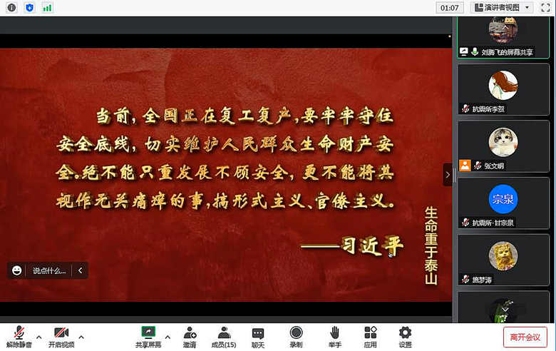為深入學(xué)習(xí)貫徹習(xí)近平總書(shū)記關(guān)于安全生產(chǎn)的重要論述和重要指示精神,統(tǒng)籌發(fā)展和安全,切實(shí)加強(qiáng)職工安全生產(chǎn)意識(shí),12月23日上午抗震所組織本部門(mén)職工通過(guò)線(xiàn)上方式集中學(xué)習(xí)了電視專(zhuān)題片《安全重于泰山》。