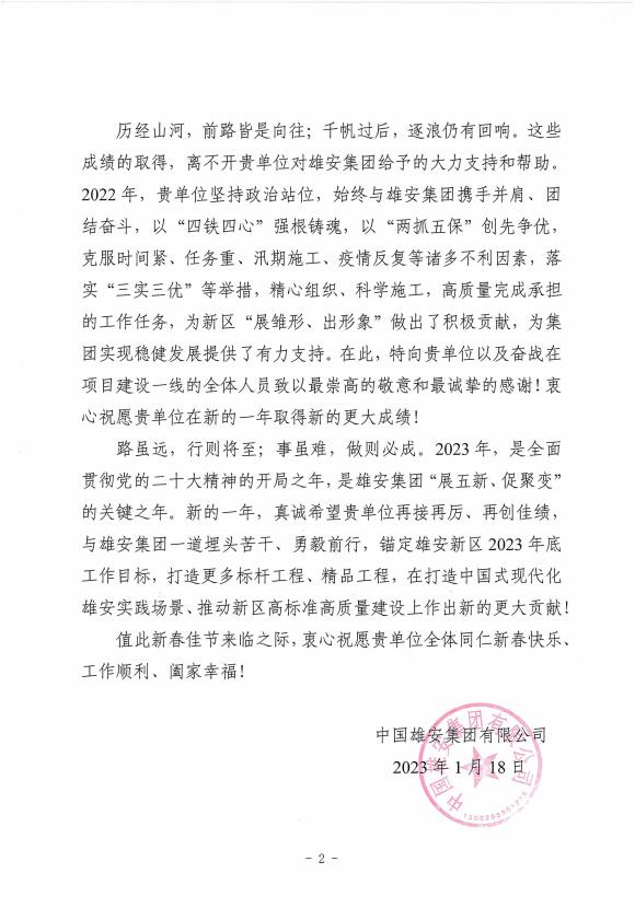 近日,建研正方公司收到雄安集團發(fā)來的感謝信,對建研正方公司2022年為雄安新區(qū)發(fā)展建設所做出貢獻表示感謝。