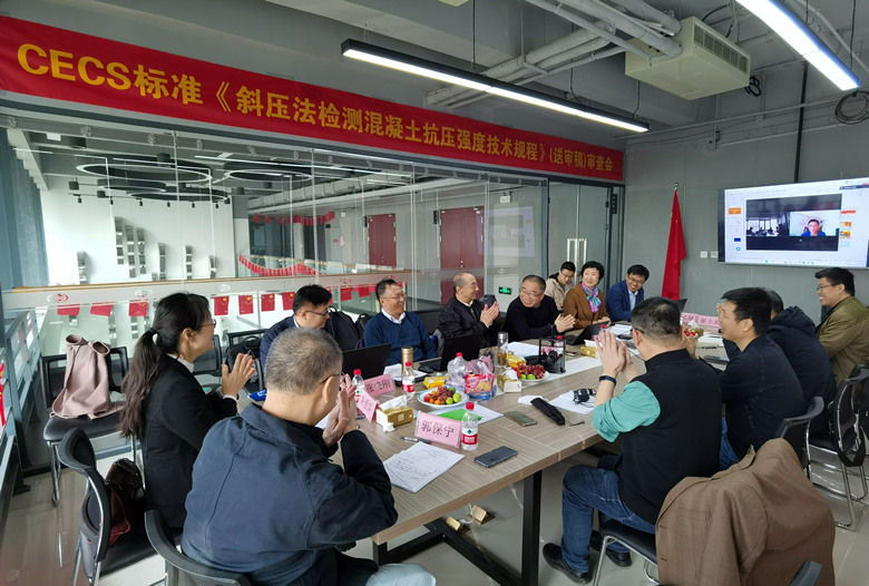 2023年3月28日,由河北省建筑科學(xué)研究院有限公司聯(lián)合河北建筑工程質(zhì)量檢測中心有限公司、邢臺市建設(shè)工程質(zhì)量檢測有限公司、承德中天建設(shè)工程檢測試驗有限公司、重慶大學(xué)、張家口市建設(shè)工程質(zhì)量檢測中心有限責(zé)任公司、科之杰新材料集團(tuán)有限公司、河北萬博檢驗檢測技術(shù)服務(wù)有限公司、滄州市開元建筑檢測有限公司等11家單位共同編寫的中國工程建設(shè)標(biāo)準(zhǔn)化協(xié)會標(biāo)準(zhǔn)《斜壓法檢測混凝土抗壓強(qiáng)度技術(shù)規(guī)程》(送審稿)審查會以線上線下相結(jié)合的方式召開。中國工程建設(shè)標(biāo)準(zhǔn)化協(xié)會領(lǐng)導(dǎo)、標(biāo)準(zhǔn)審查組專家以及標(biāo)準(zhǔn)編制組成員30余人參加了本次會議。