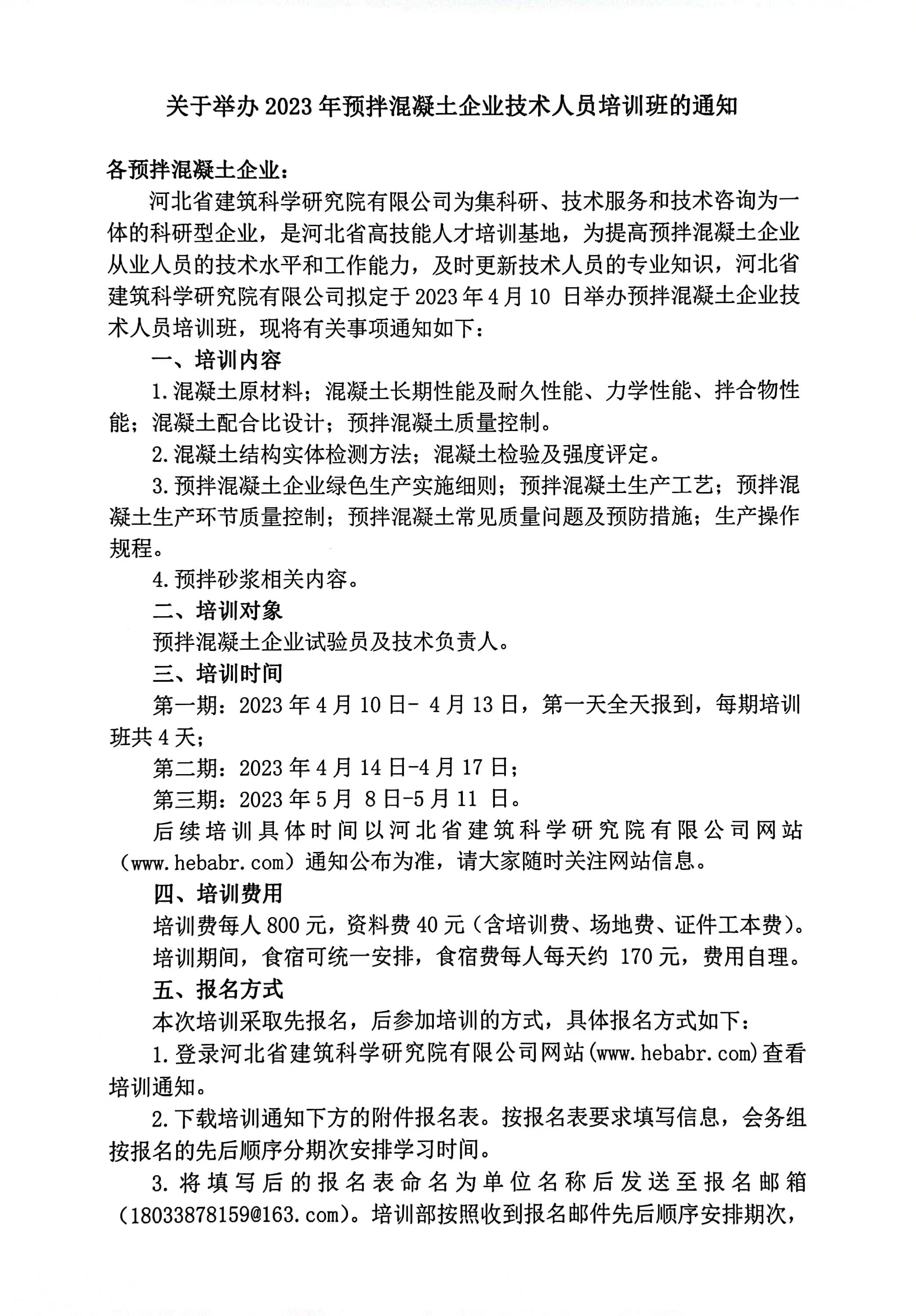 2023年預(yù)拌混凝土企業(yè)技術(shù)人員培訓(xùn)班報(bào)名表