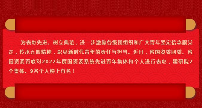 【建研青年】喜報(bào)!建研院2個(gè)集體、9名個(gè)人榮獲省國資委表彰